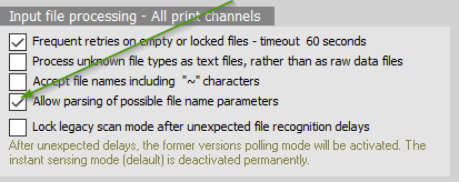AutoPrint is prepared to parse the name of each input-file for basic print-job control parameters to overlay the static print channel setup.